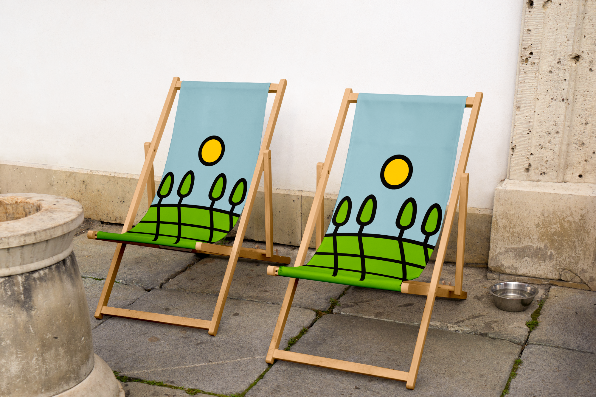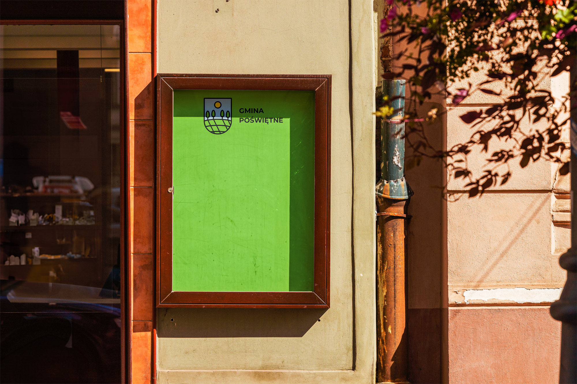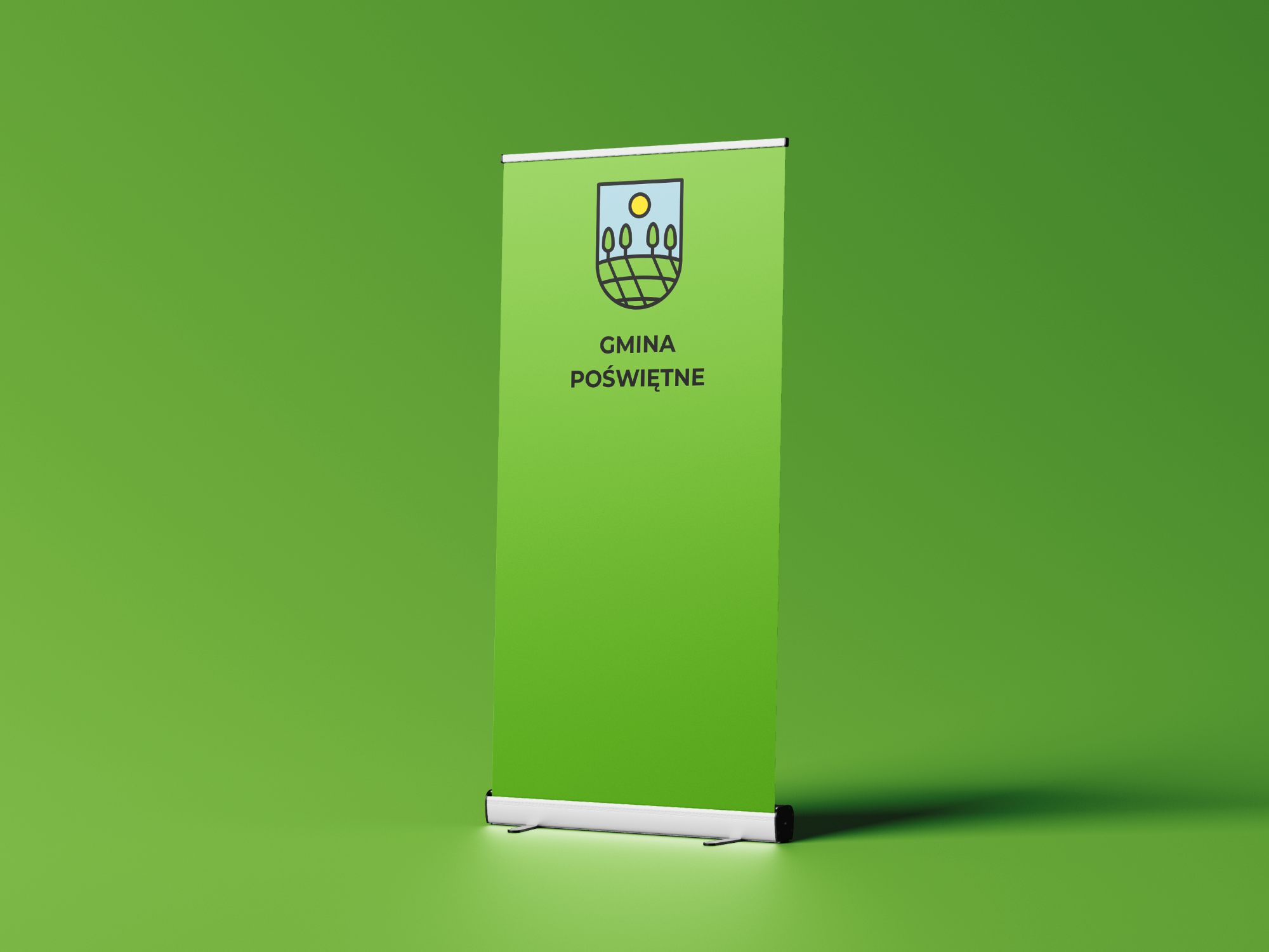 Identyfikacja została zaprojektowana jako system, który funkcjonuje zarówno w przestrzeni instytucjonalnej, jak i plenerowej. Leżaki, materiały promocyjne oraz nośniki publiczne pokazują, że marka gminy może być jednocześnie oficjalna i przyjazna.
